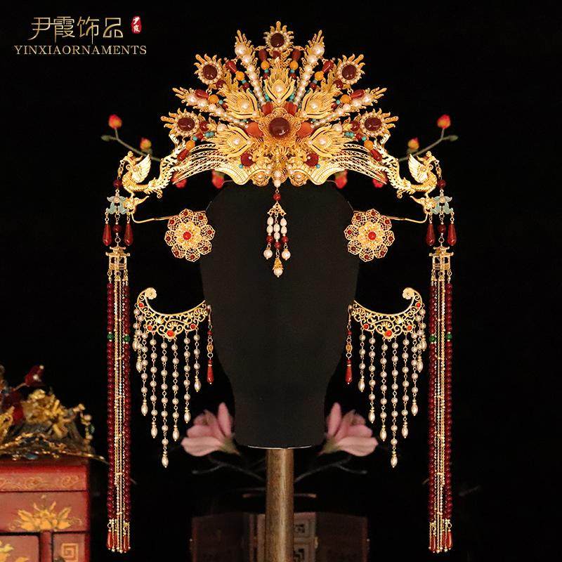 原创明制唐风古风汉服结婚百搭头饰凤冠新娘婚嫁发饰全套婚礼套装