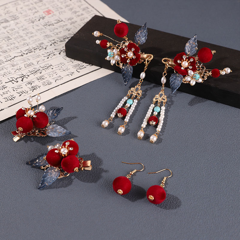 新娘敬酒服头饰中式复古酒红色头花森系超仙发饰套装结婚礼服配饰