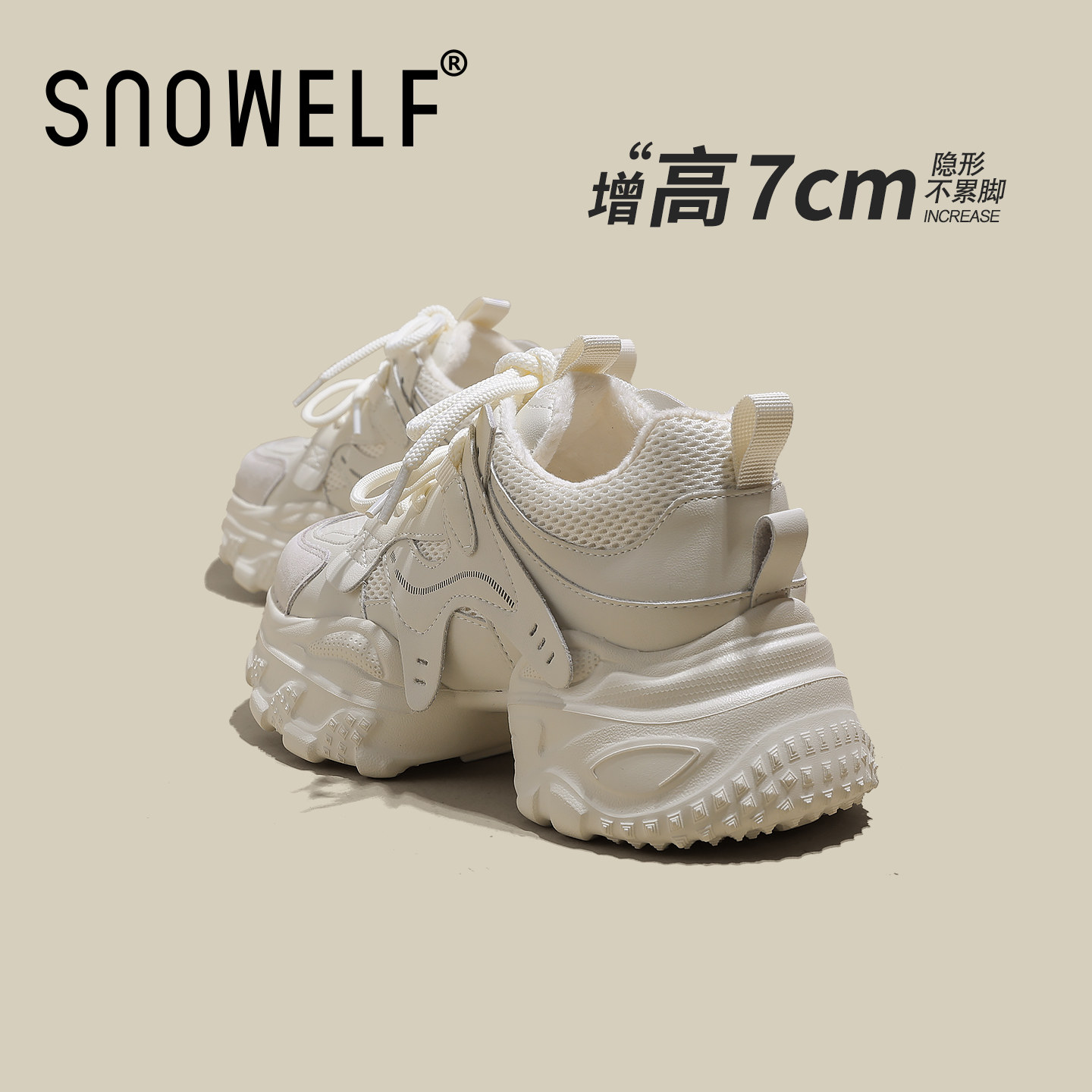 白色厚底老爹鞋女2026新款春季小个子内增高女鞋保暖加绒运动鞋子