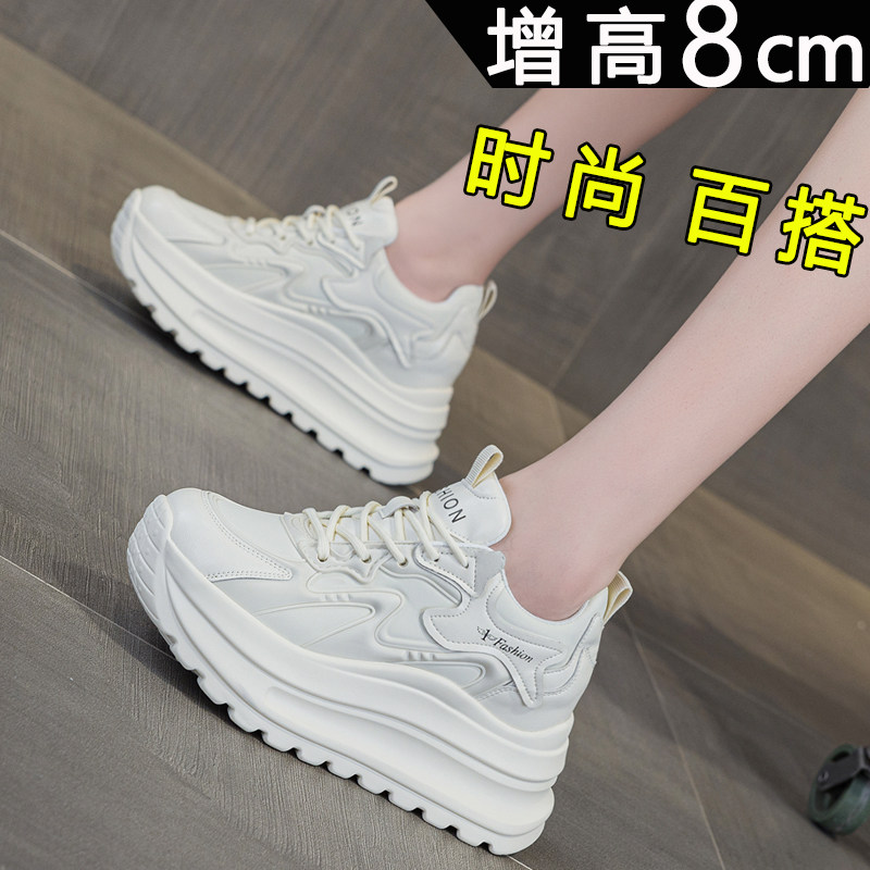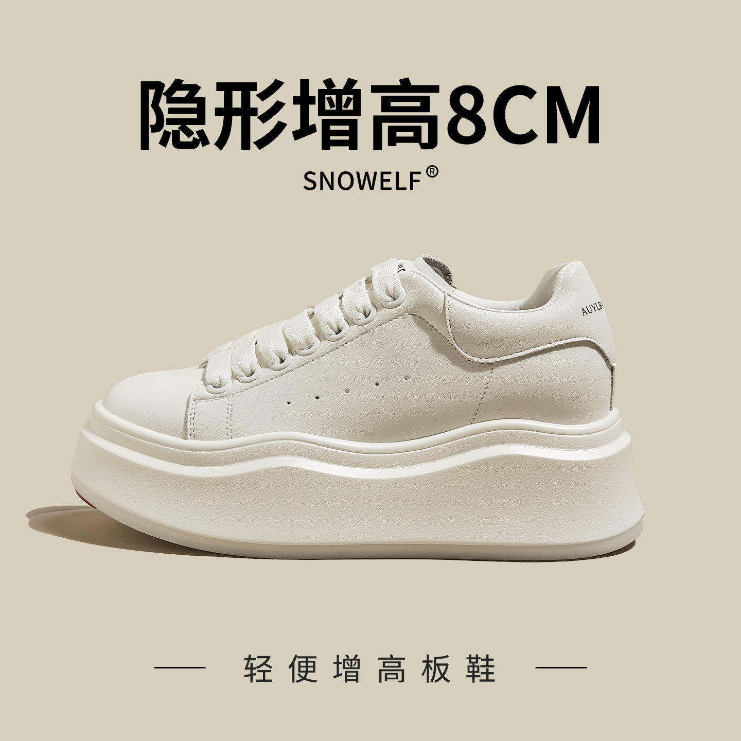 8cm小白鞋女2025秋季新款厚底白色板鞋10公分小个子内增高女鞋子