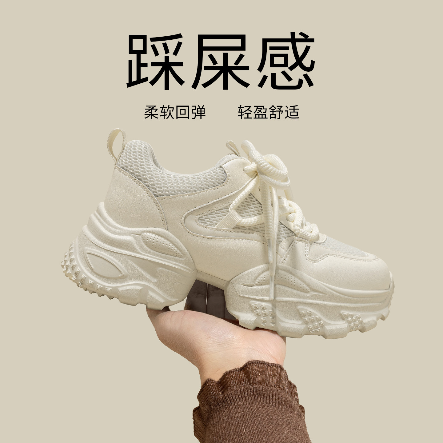 厚底老爹鞋女款2026新款春季白色鞋子小个子内增高女鞋休闲运动鞋