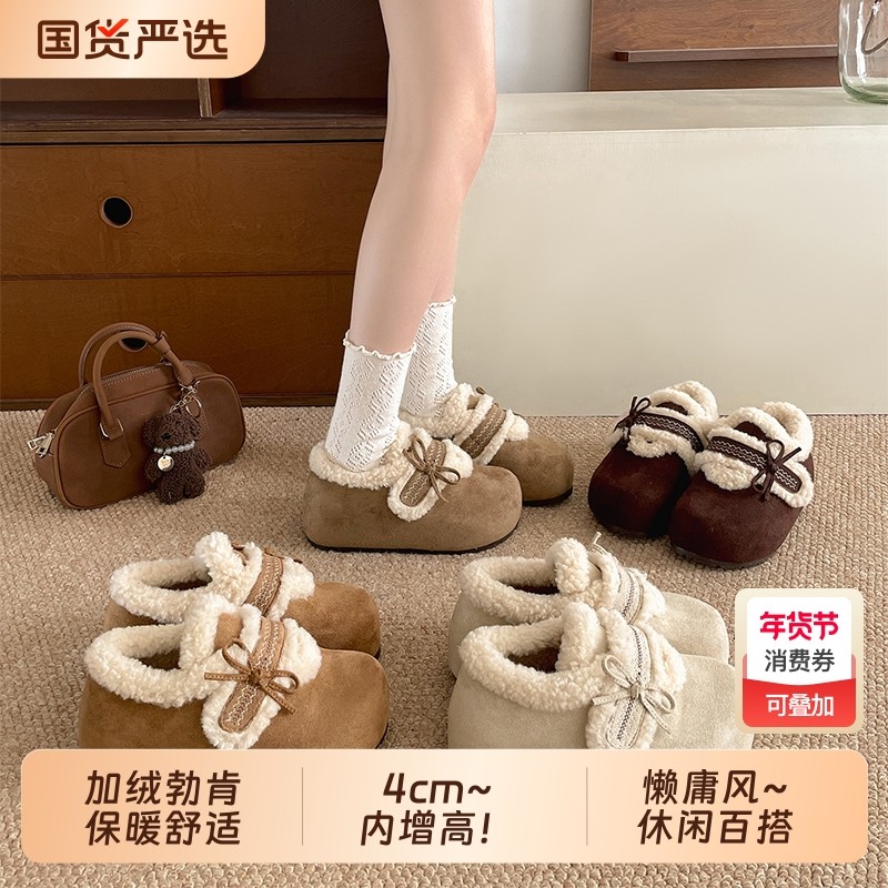 白色厚底内增高加绒加厚雪地靴女2025新款防滑保暖毛毛勃肯棉鞋子