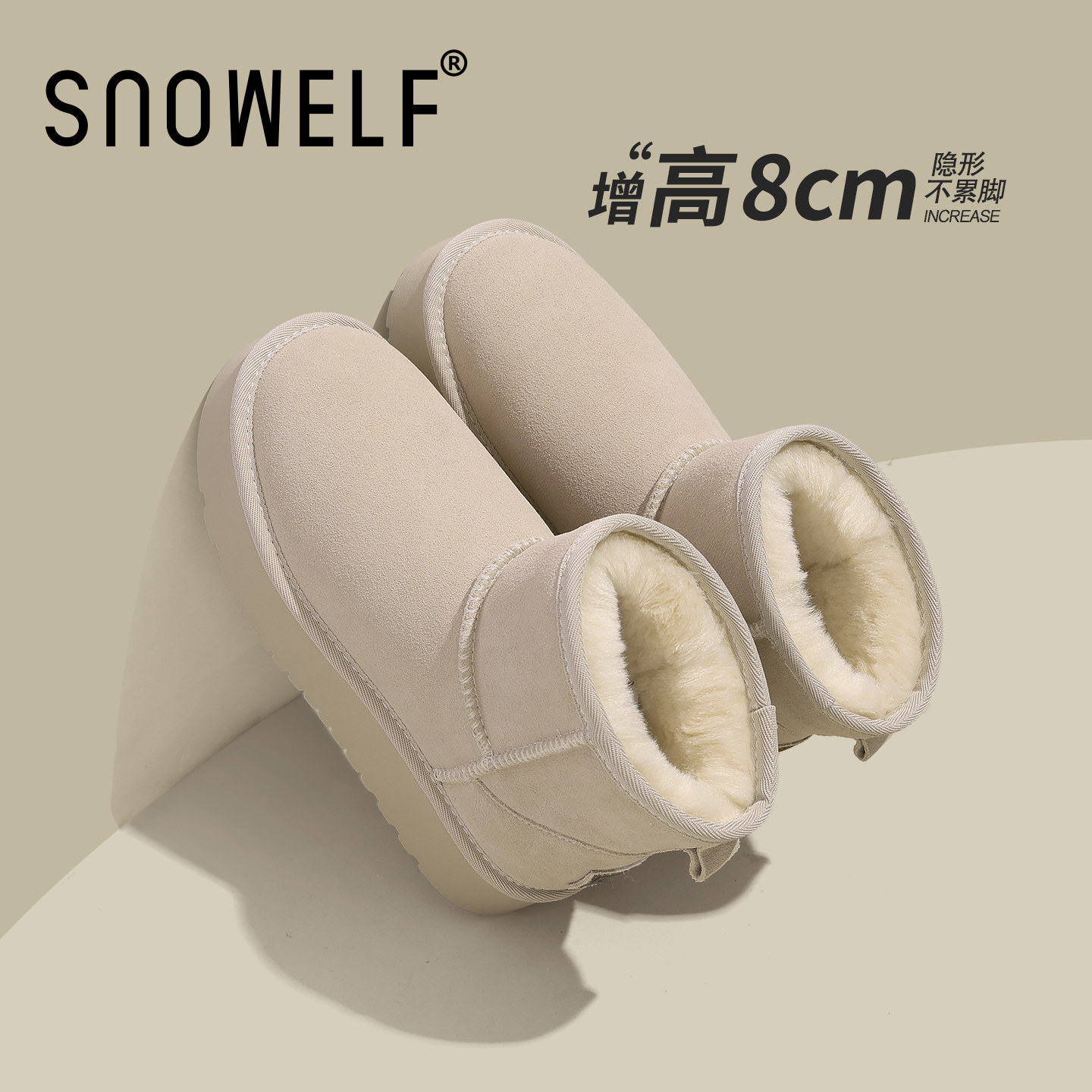 白色厚底内增高雪地靴女2025新款冬季毛毛加绒加厚保暖防滑棉鞋子