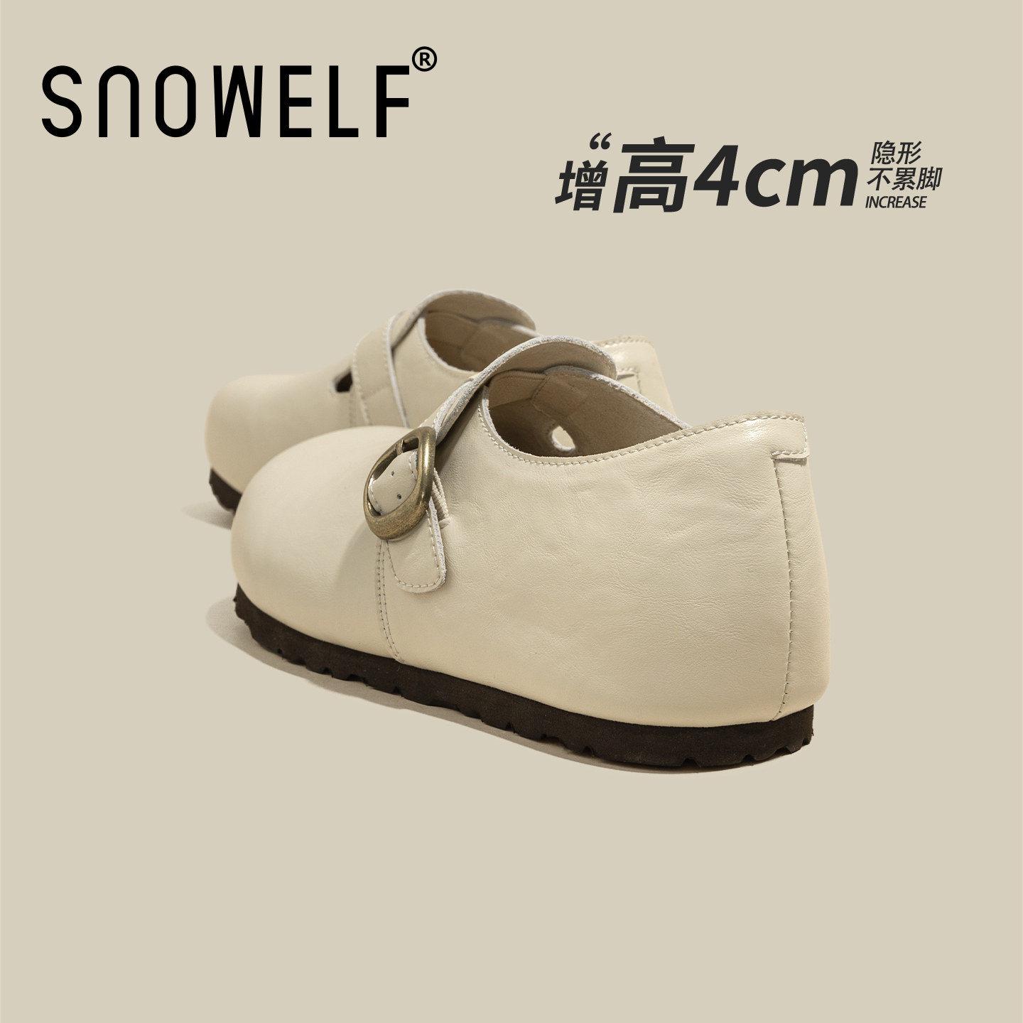 白色厚底勃肯鞋女鞋2026早春新款单鞋内增高巨好看配裙子真皮鞋子