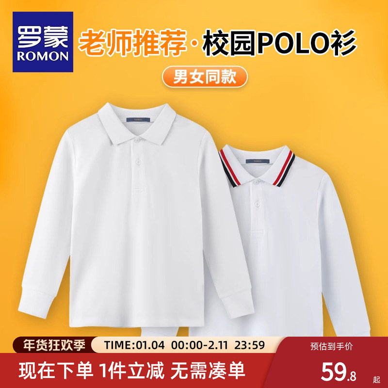 罗蒙儿童白色polo衫长袖纯春秋t恤打底衫棉男女童小学生校服班服