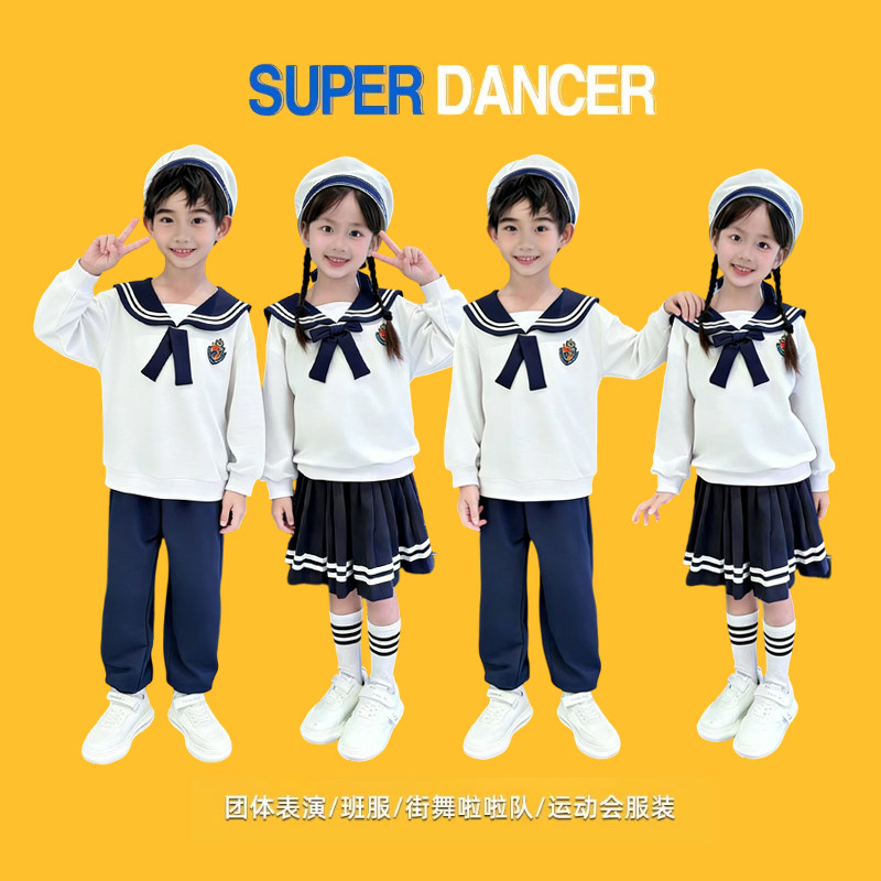 元旦儿童海军风演出服男女童学院风街舞套装小学生校服班服表演服