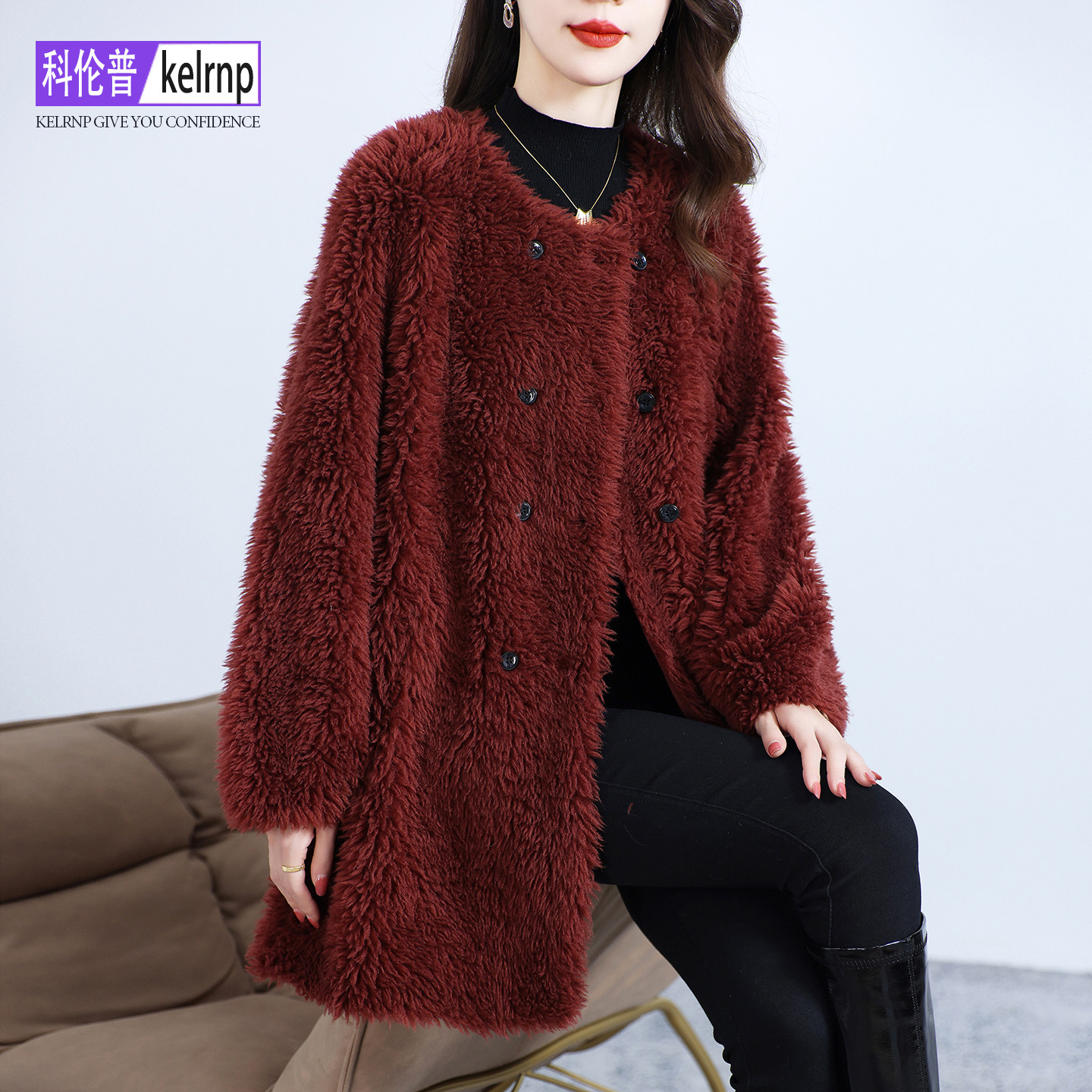 - 羊剪绒大衣女