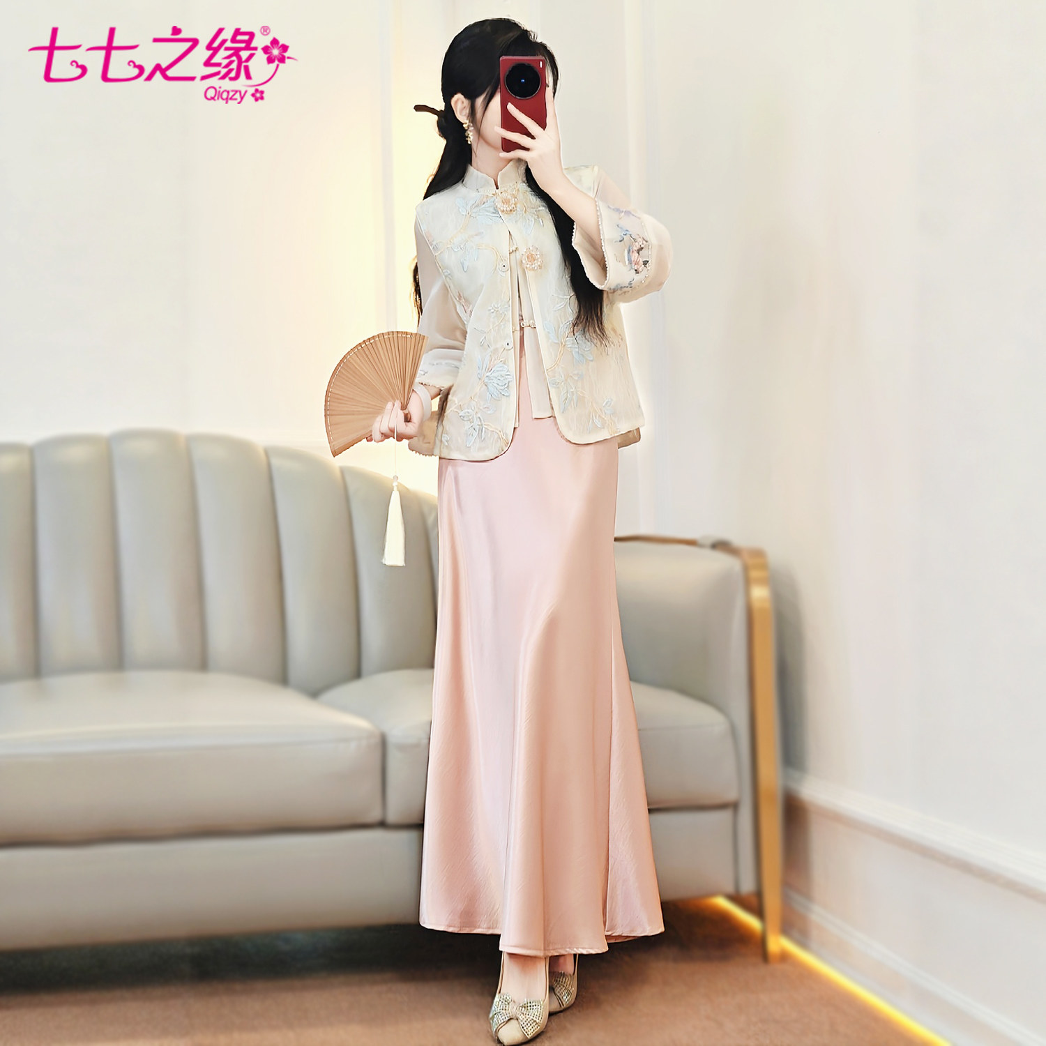 小诺本人高级感轻奢套装收腰气质名媛外套高腰鱼尾裙两件套252141