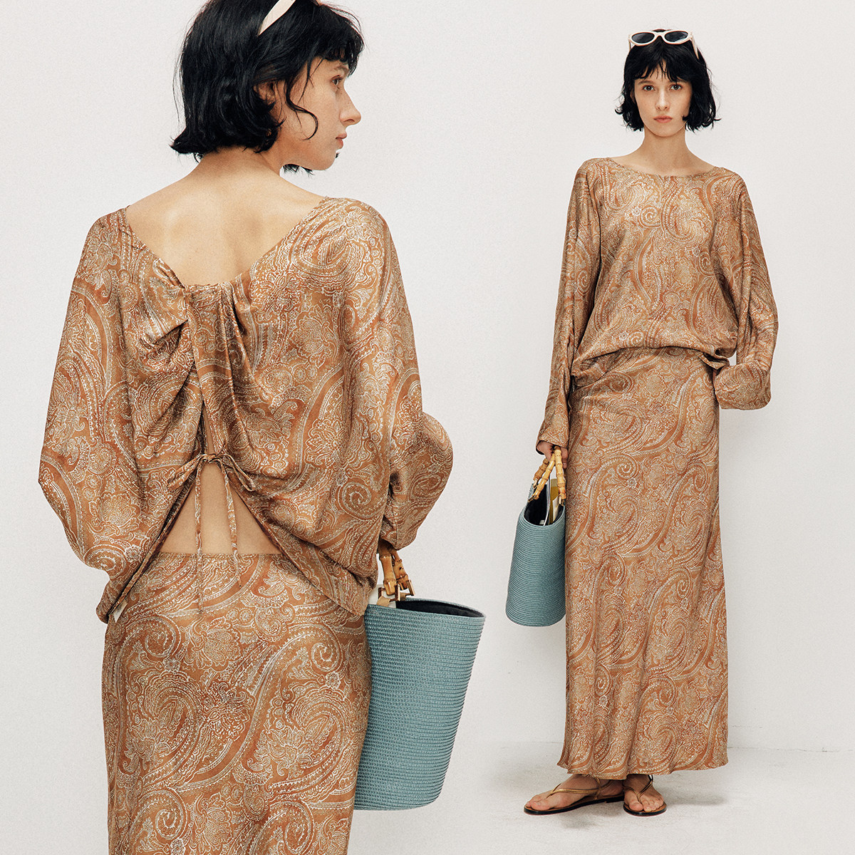 【度假出片神器】佩斯利腰果花套装 后开衩上衣+包臀鱼尾裙两件套