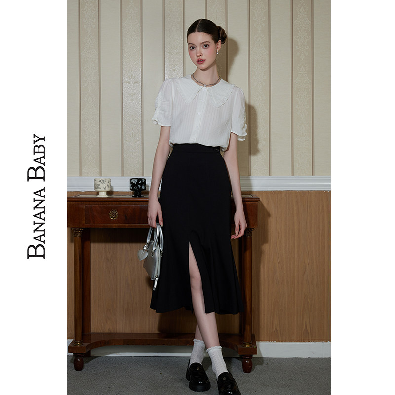 BANANA BABY2025年秋新款甜美通勤两件套装女娃娃领衬衣鱼尾半裙