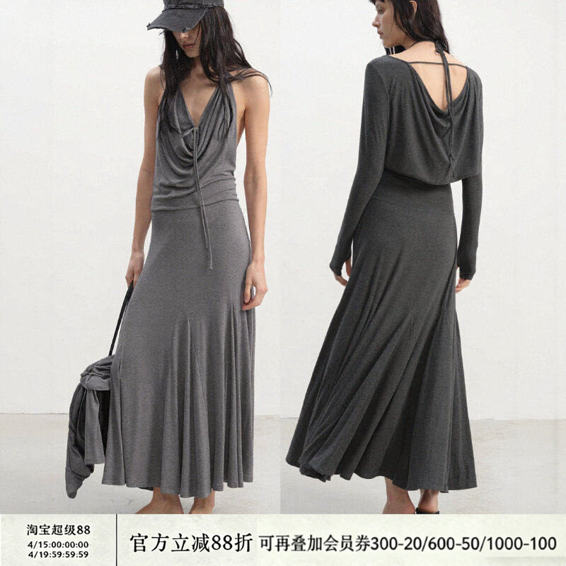 JCAESAR WOMEN 荡领坎肩连衣裙两件套 舒适透气 微收腰鱼尾长裙