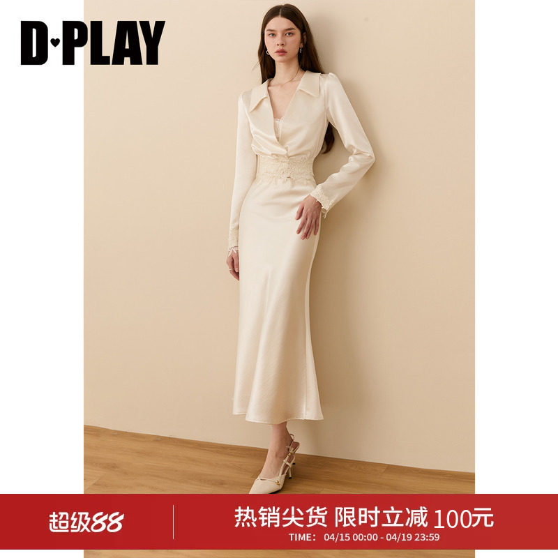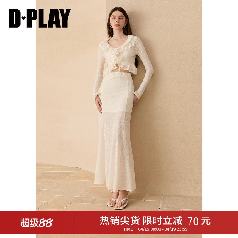 DPLAY米白色套装V领修身上衣女高腰鱼尾长款半裙两件套2026年
