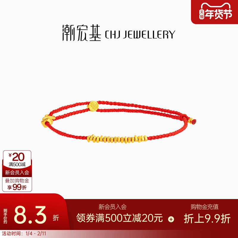 潮宏基至简足金新年骐骥红绳手链黄金手绳手饰送女友生日礼物计价