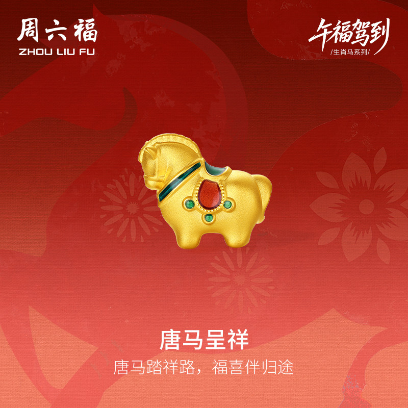 周六福黄金手绳女编绳奔财萌马生肖马系列3D硬金珐琅定价新年礼物