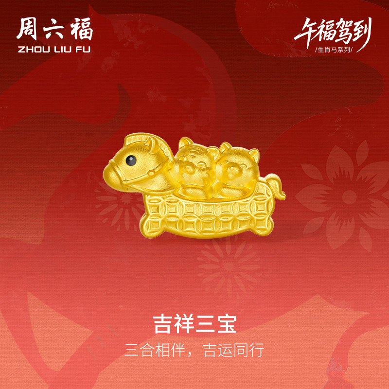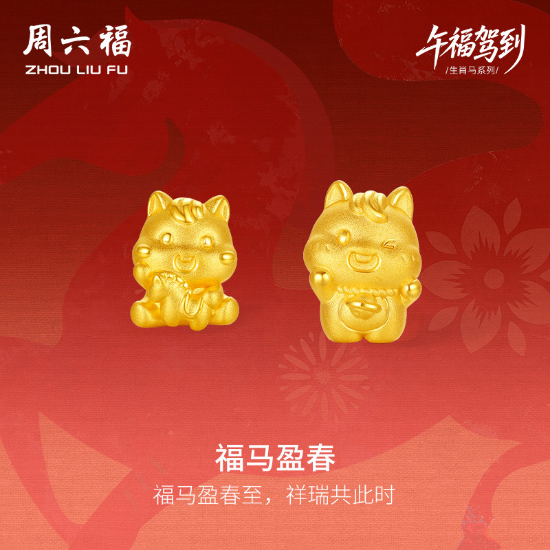 周六福3d硬金定价黄金手绳宝宝小孩儿童福马生肖马满月礼新年礼物