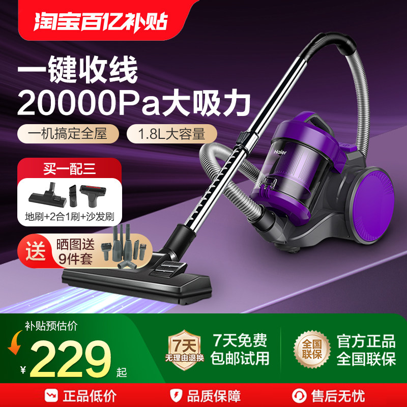 海尔吸尘器家用小型大吸力大功率强力手持除螨宠物猫毛地毯吸尘机