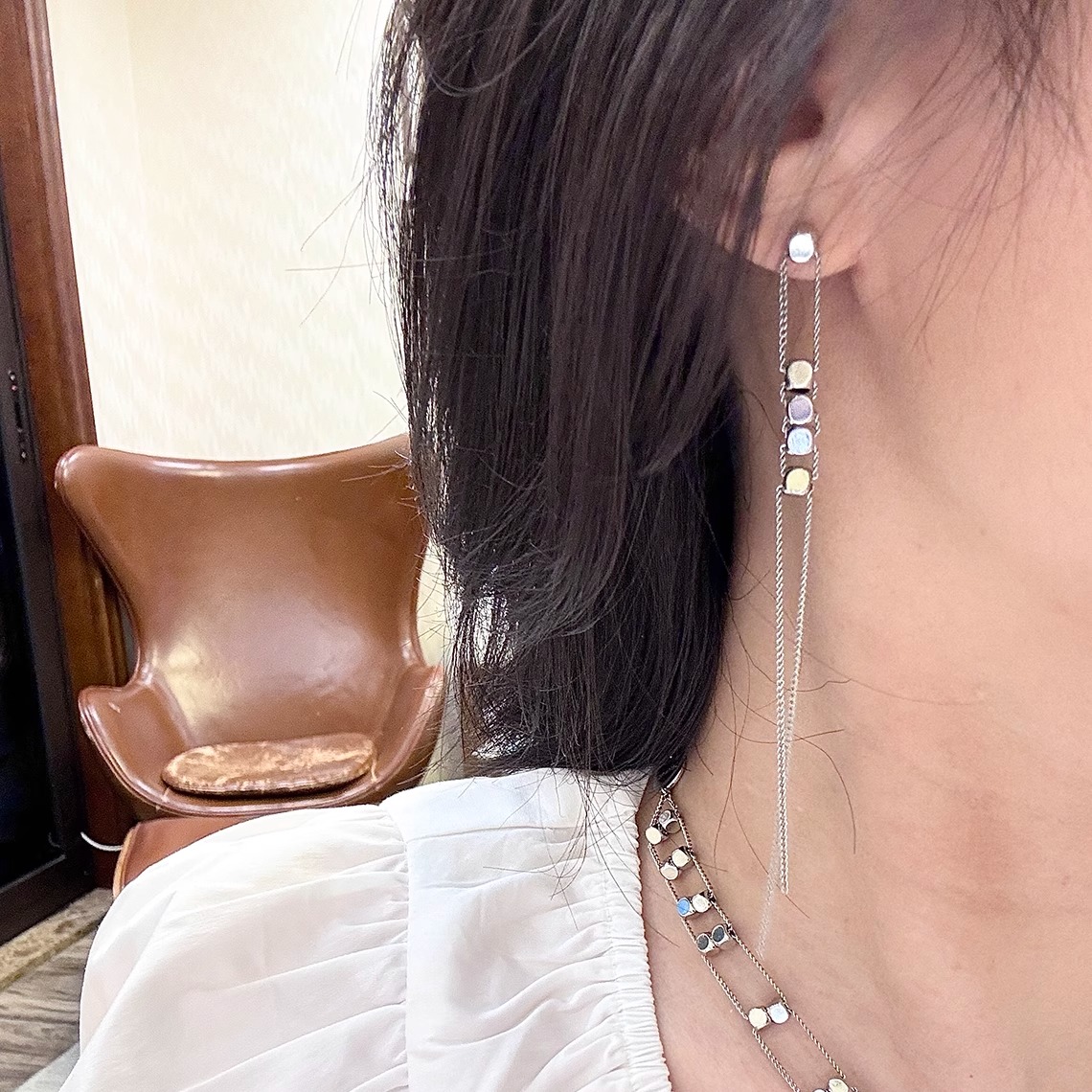 耳边铛4耳朵仔子同款小方糖链条流苏长款耳环银色高级感项链手链