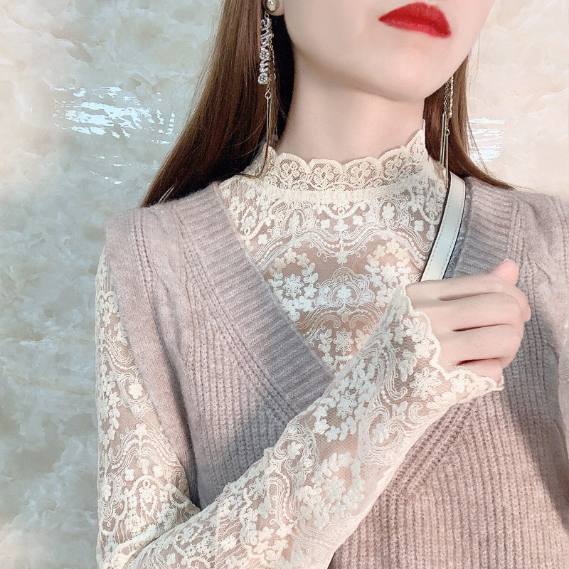 - 打底衫秋冬女 蕾丝