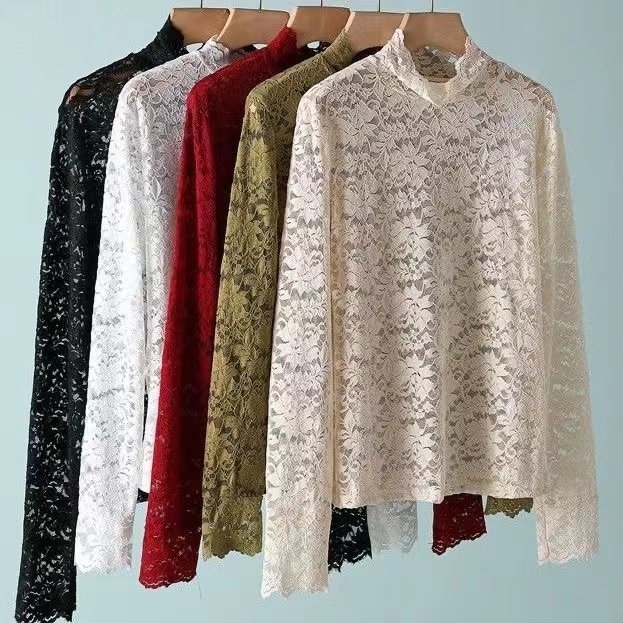 - 高领蕾丝衫女长袖