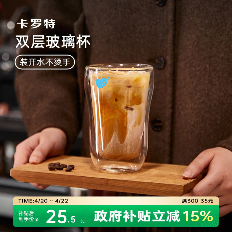 卡罗特双层玻璃杯女高颜值新款水杯高硼硅耐高温家用喝水咖啡杯子