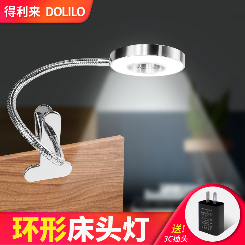 LED插电床头灯夹式纹绣夹子灯调光USB宿舍书桌大学生学习护眼台灯