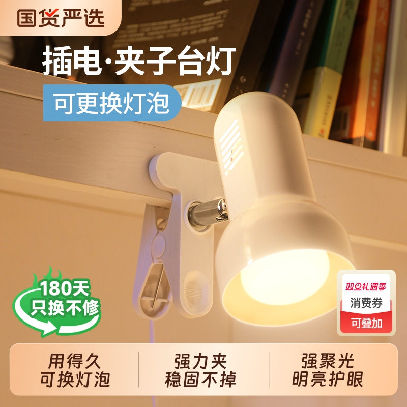 插电床头灯夹式LED台灯卧室护眼宿舍学生儿童夹子灯灯座可换灯泡