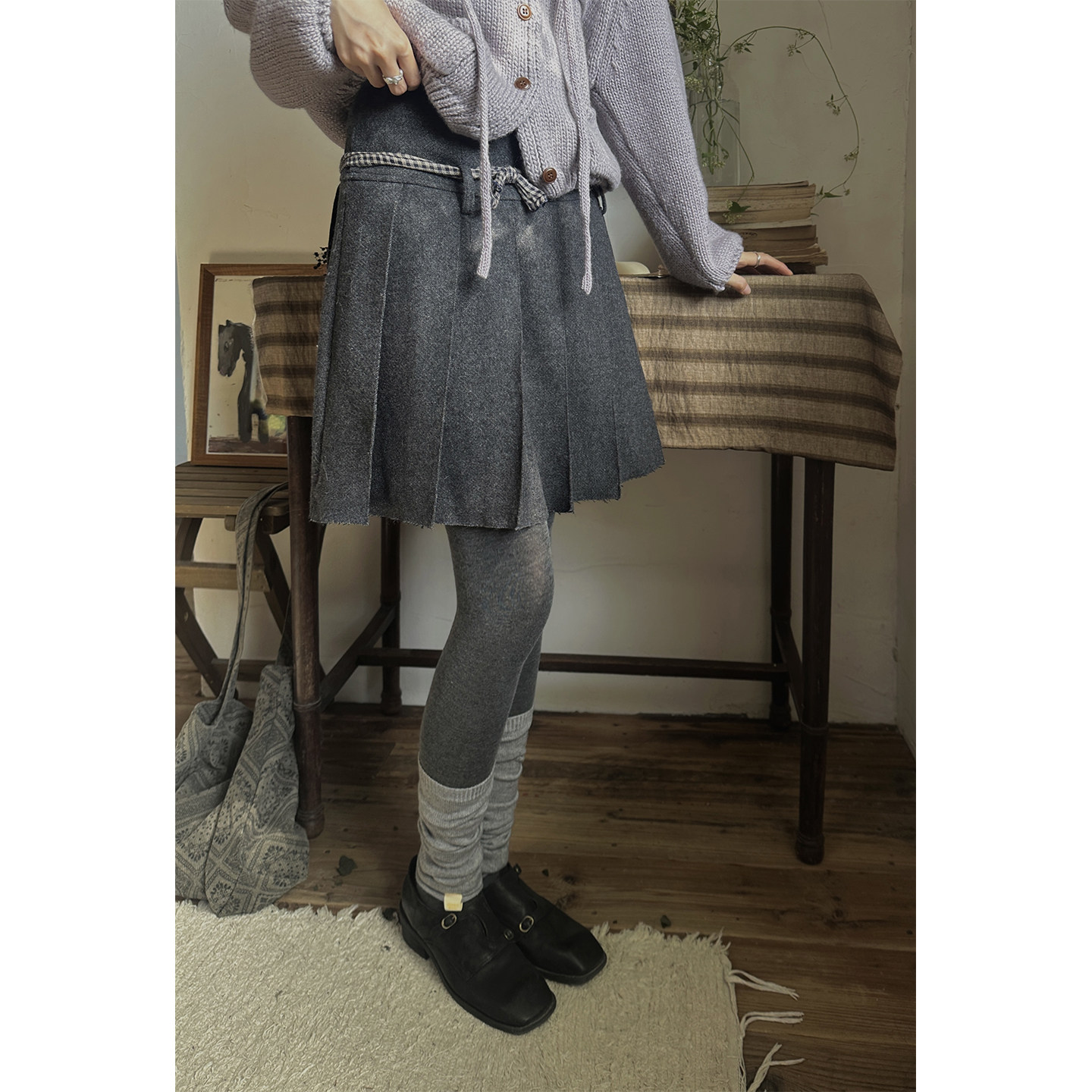JMWOMEN深灰色复古毛呢百褶高腰半身裙秋冬款加厚宽松百搭a字短裙
