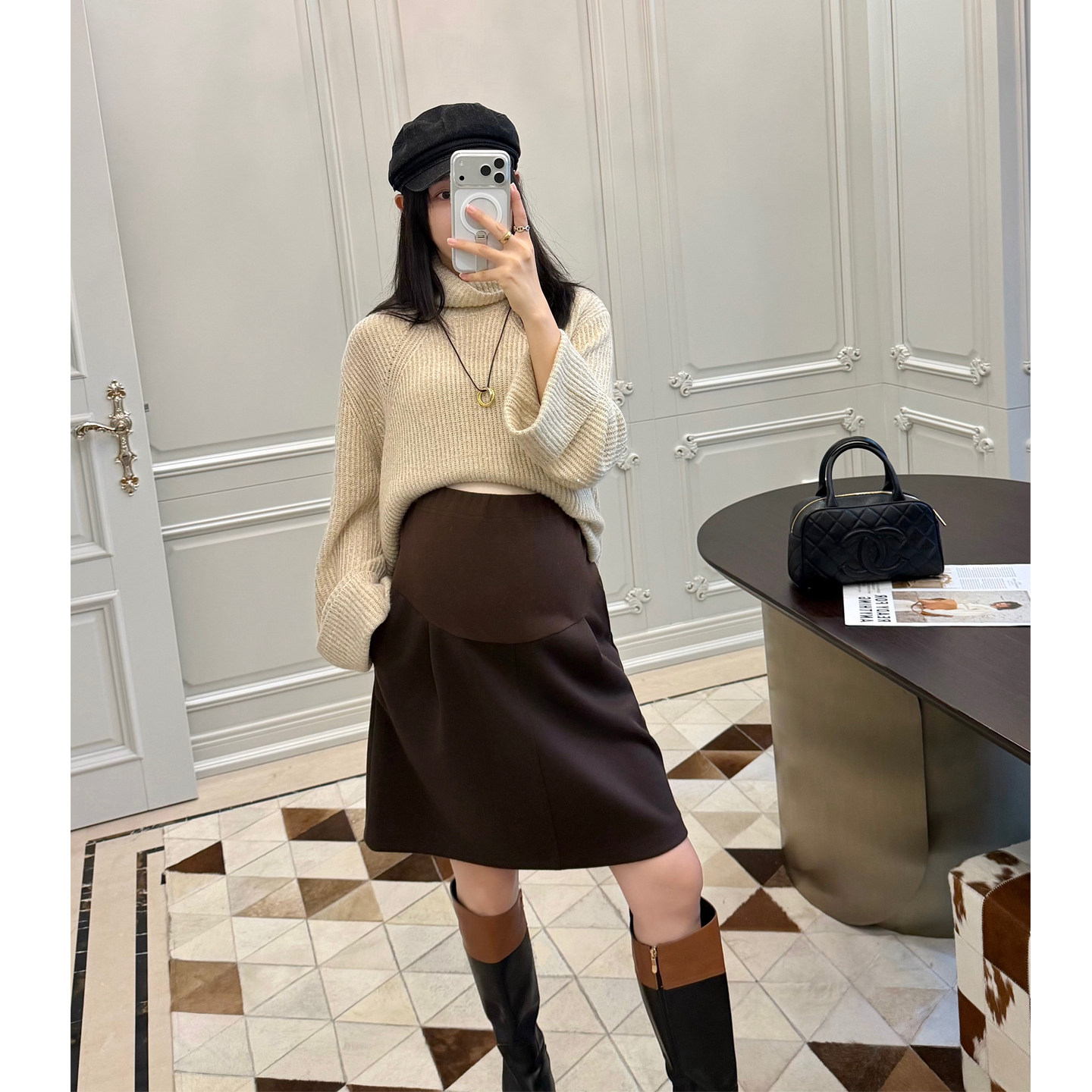 LeoMami孕妇装秋冬款醋酸羊毛半身裙复古减龄气质包臀毛呢A字裙