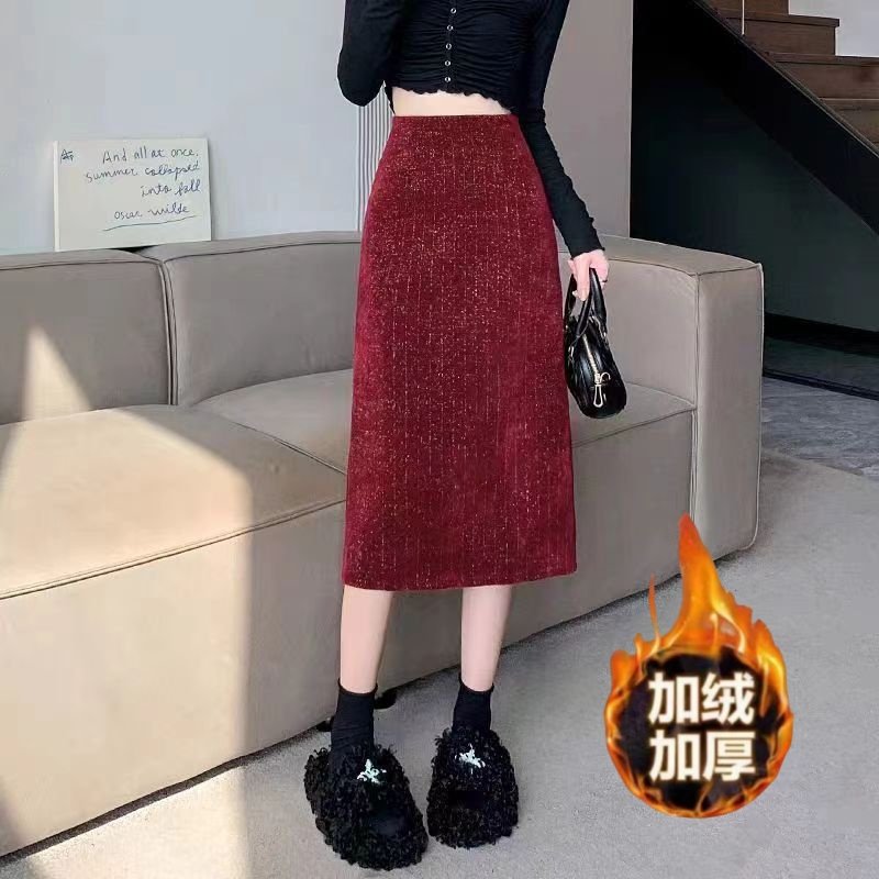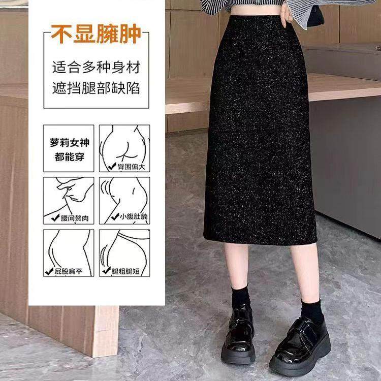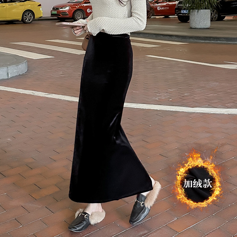 金丝绒半身裙女加绒加厚包臀裙2025秋冬款高腰显瘦开叉复古一步裙