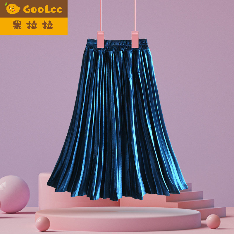 复古风儿童长裙女童丝绒半身裙小女孩春秋冬款女宝宝公主百褶裙子