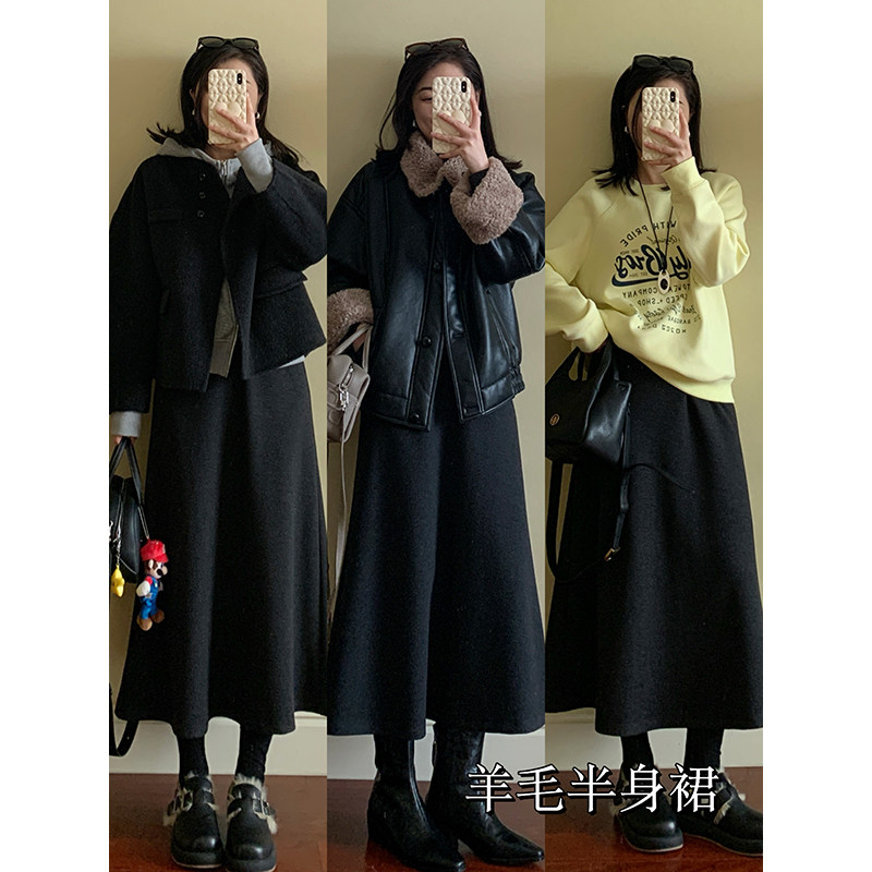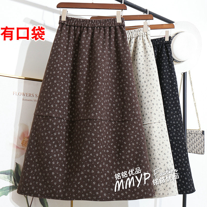 秋冬款复古碎花加厚毛呢半身裙女冬天2025新款长款裙子冬裙半裙