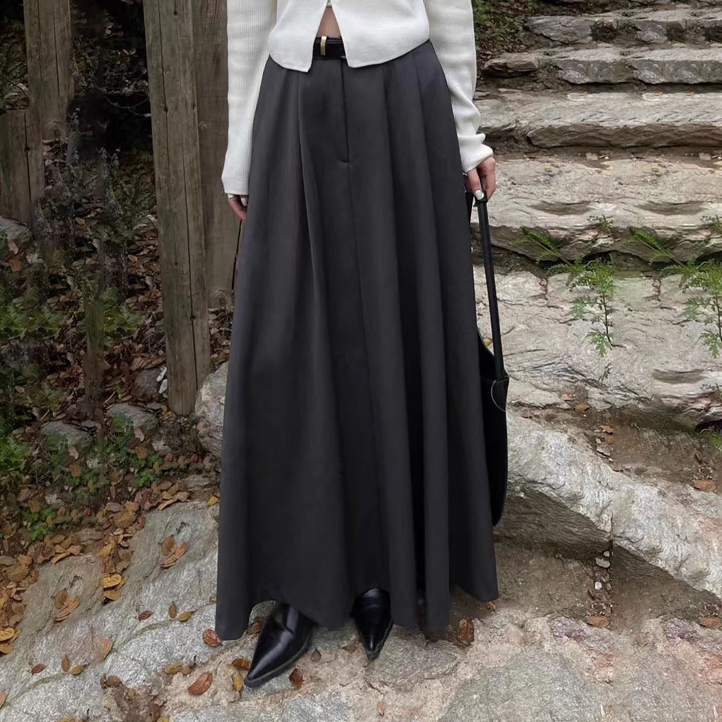 2025年秋冬款气质复古高腰百褶中长伞裙显瘦垂感大摆西装半身裙