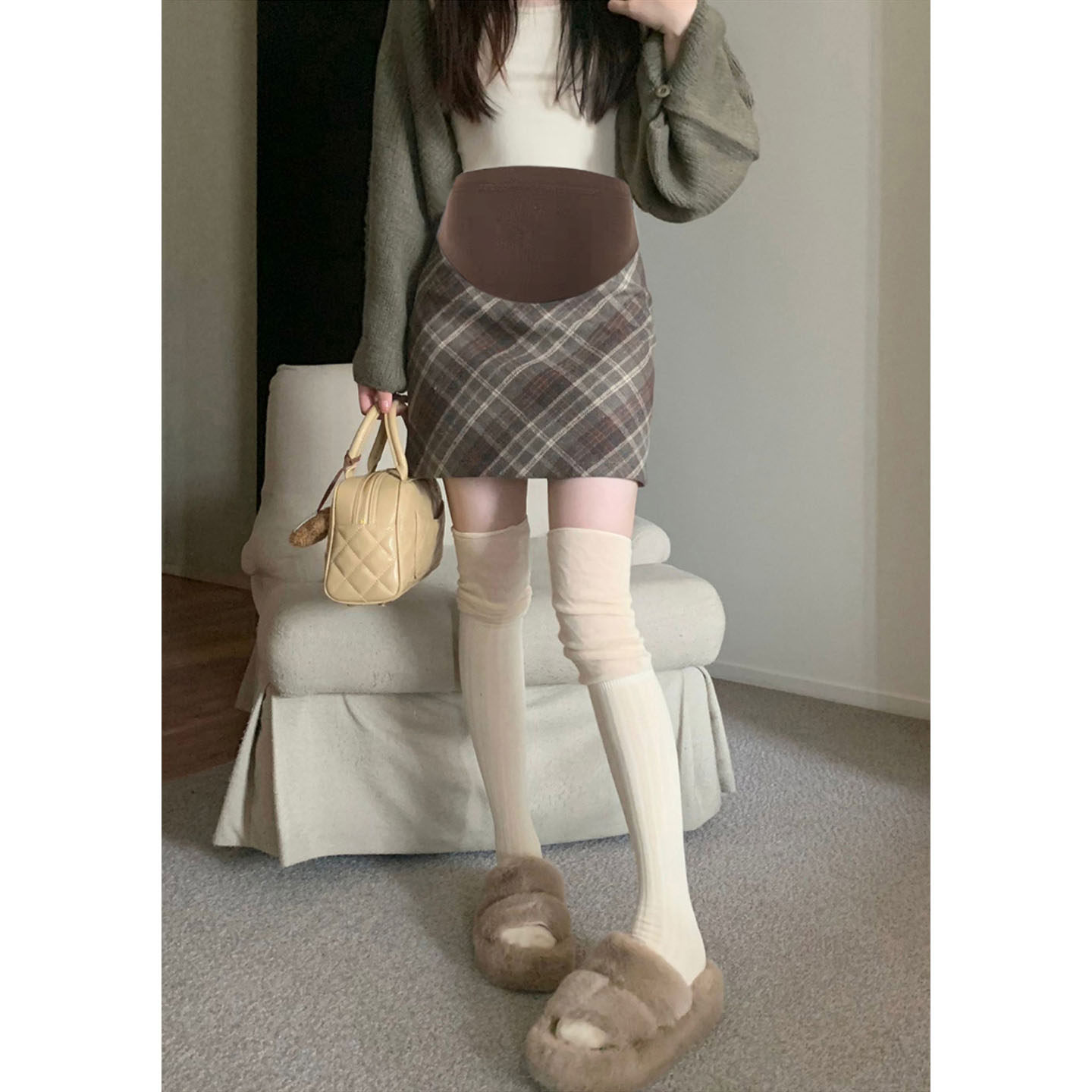 孕妇半身裙秋冬款2025新款小个子托腹美式复古毛呢格子包臀短裙子