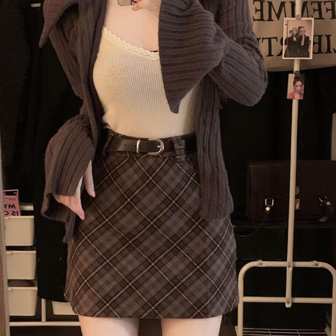 辣妹复古格子半身裙女秋冬款学院风高腰显瘦包臀裙小个子a字短裙