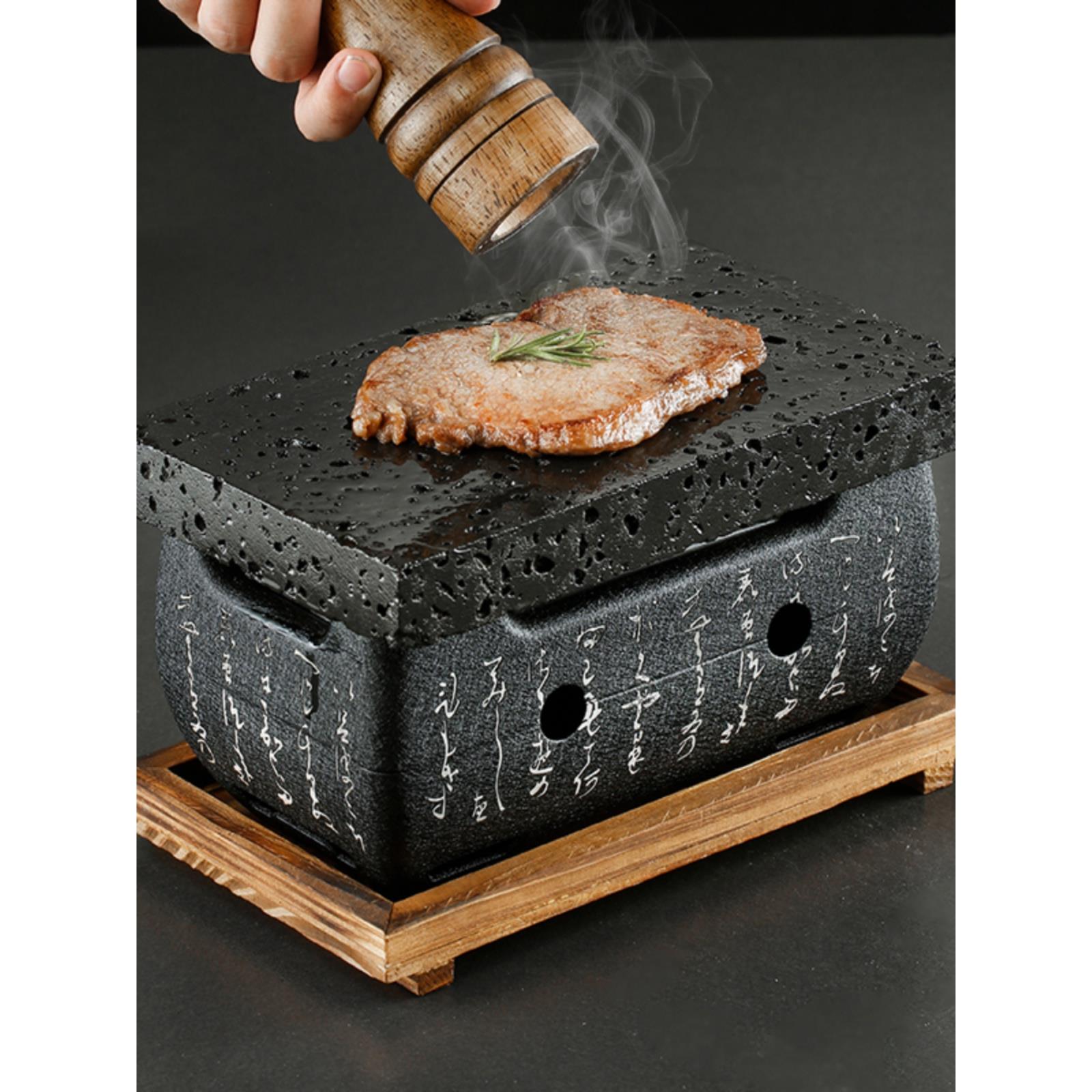 凹槽火山岩石板烤肉盘日式文字炭炉烧烤炉煮茶炉小烤肉炉牛扒煎盘