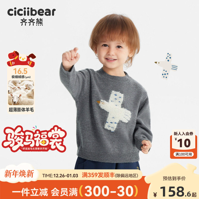 [骏马福裳羊毛]齐齐熊男童毛衣加厚冬款宝宝半高领毛衫2025新款女