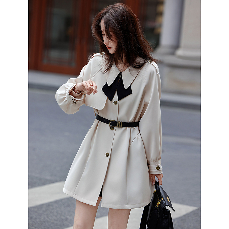 2025春秋新款淑女风西装领中长款风衣女收腰系带洋气气质外套潮