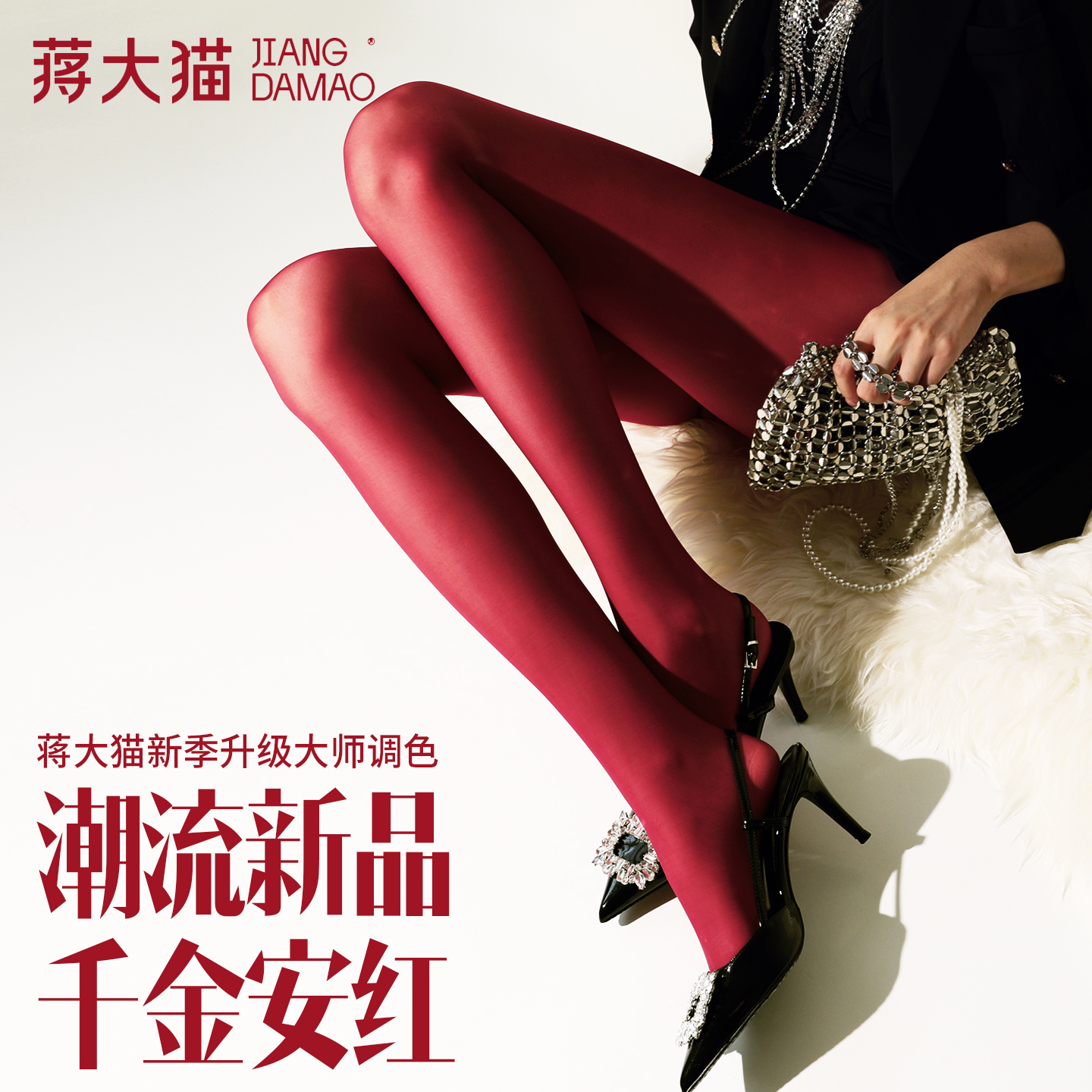 蒋大猫红色丝滑显瘦丝袜女秋薄款防勾丝打底光腿神器性感连裤袜子
