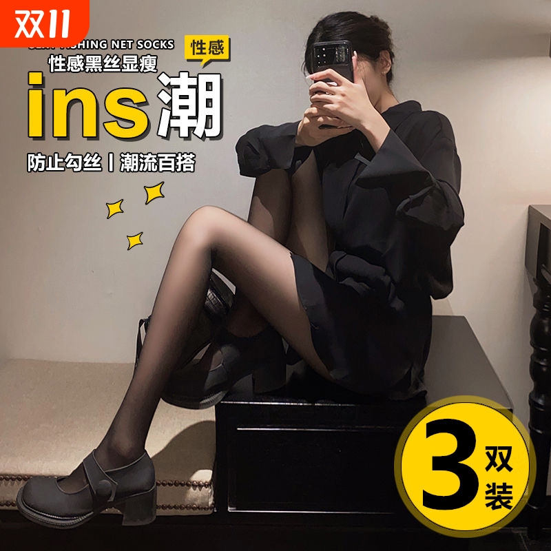 黑色丝袜女薄款防勾丝网红性感黑丝春秋新款显瘦连裤菠萝袜ins潮