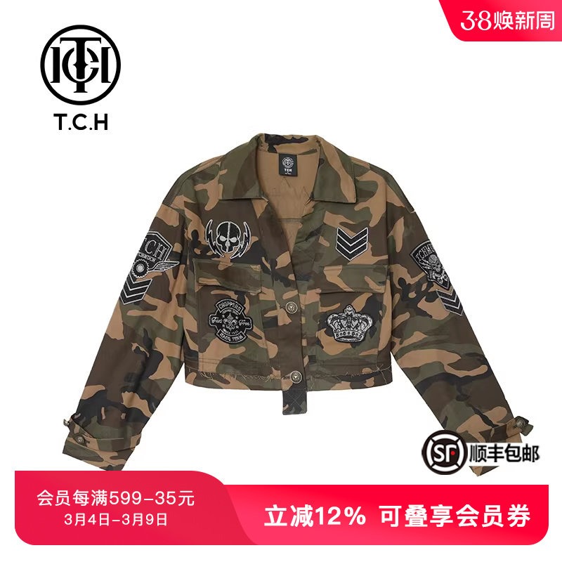 TCH潮牌轻奢潮牌烫钻迷彩短款外套女个性时尚春秋上衣T21127C6004