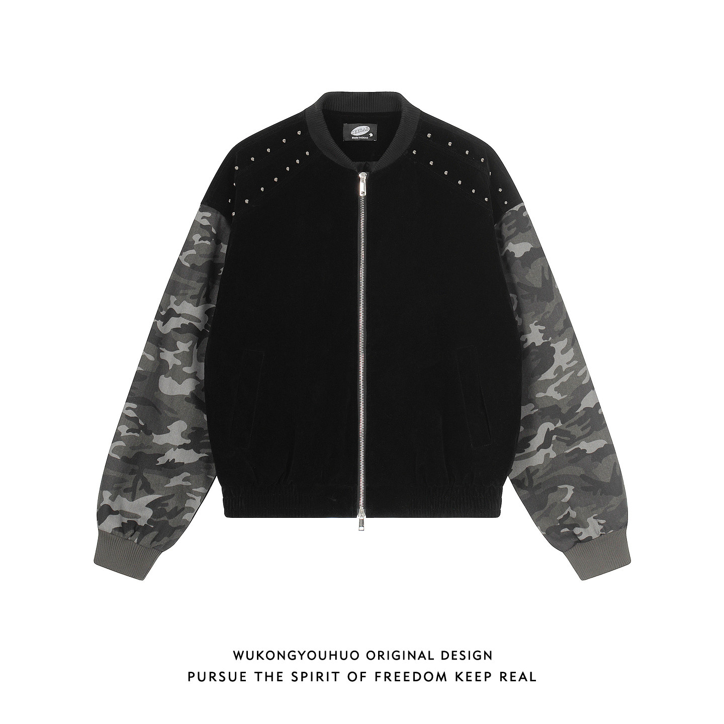 悟空有货美式嘻哈迷彩拼接棒球服外套男女潮牌宽松短款飞行员夹克