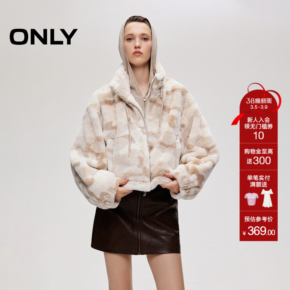 ONLY2026春季新款可调节抽绳下摆个性迷彩宽松短款毛绒棉服外套女