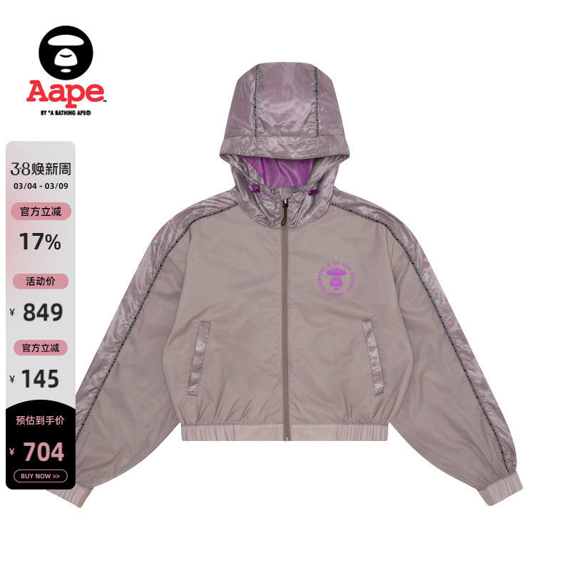 Aape旗舰店女装春秋猿人印花迷彩暗纹简约纯色短款外套7587XXK