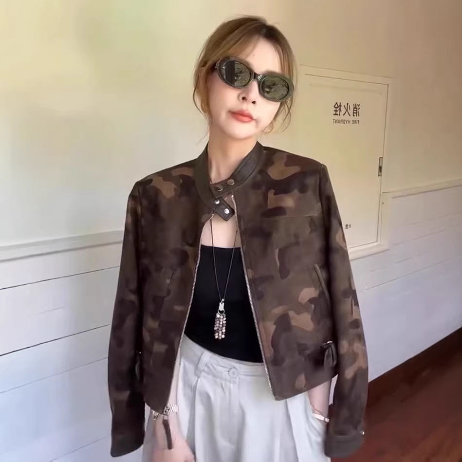 欧货复古立领迷彩短款外套女2026春季新款宽松显瘦百搭机车风夹克