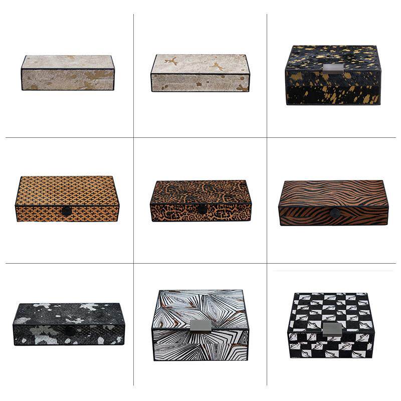 现代简约马毛皮革盒装饰首饰盒收纳创意摆件桌面衣帽间酒店样板间
