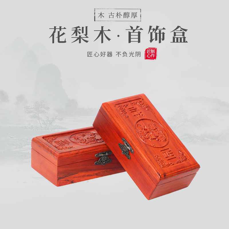 中式红木花梨木装饰首饰盒天然实木质复古珠宝手饰品收纳盒木盒子