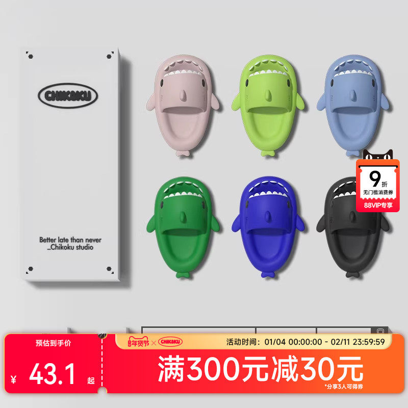 chikoku抗菌二代鲨鱼亲子拖鞋女宝宝室内家居洗澡防滑儿童凉拖鞋
