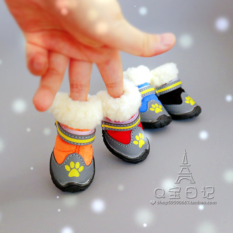 fokwow旗舰店小狗鞋丝绒小棉鞋防风防雪夹棉防滑冬天保暖宠物鞋