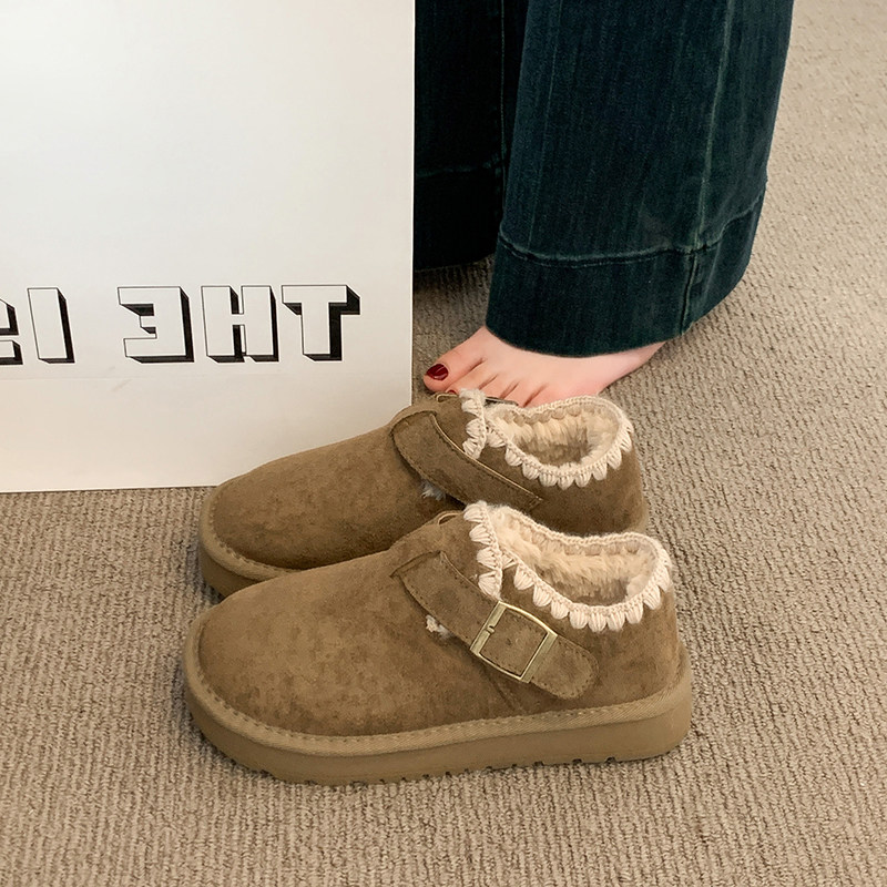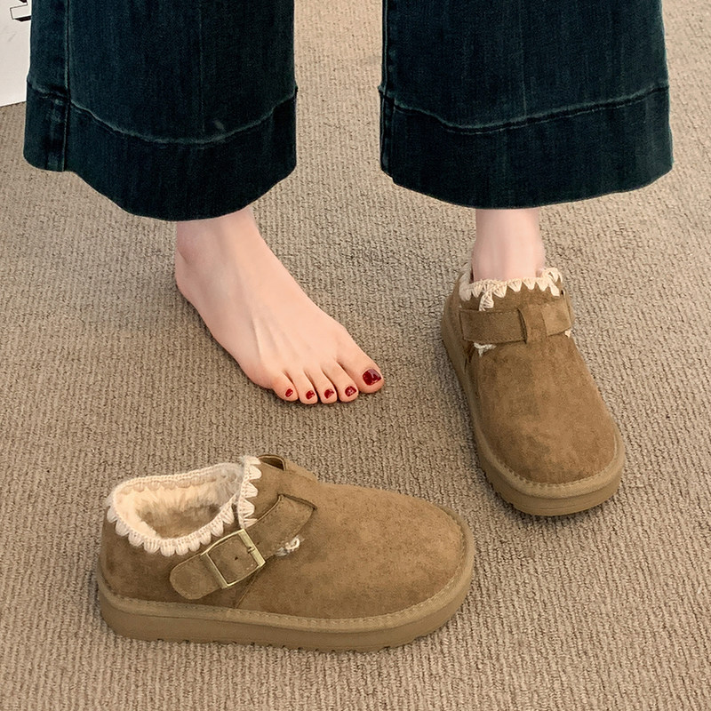 厚底加绒保暖全包勃肯鞋低帮雪地靴女2025冬季新款毛毛棉鞋乐福鞋