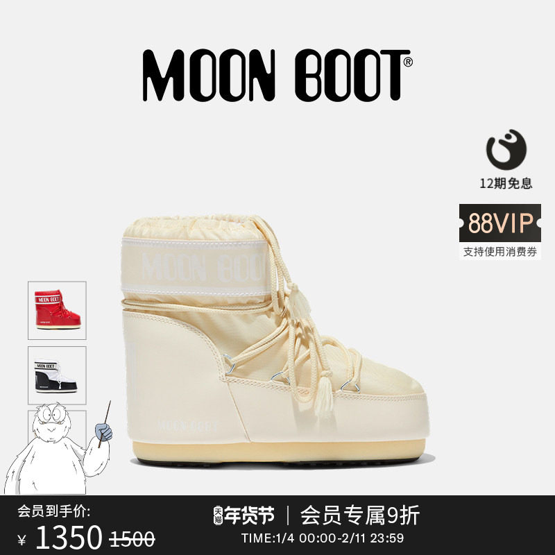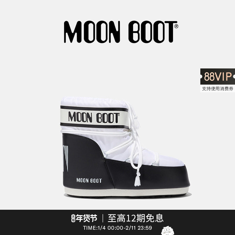 Moon Boot经典款男女同款不分左右白色ICON尼龙低帮雪地靴